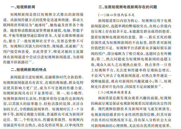 随着互联网的普遍覆盖和应用,移动数据流量资费大幅度降低,为自媒体的兴盛与发展注入了巨 大活力,微信、短视频等新媒体对信息传播和舆论引导的影响越来越大,对传统的电视媒体造成冲击。本文开 展融媒时代短视频在电视新闻报道中的应用研究,以期助力传统媒体发展。