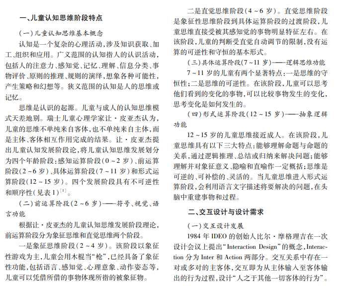 交互设计作为展览与观众之间的枢纽,能够更好地发挥科普类展览的育人功能。本文基于交互设 计概念和手段,针对科普类展览的儿童客群,将交互设计要素与儿童认知发展的阶段性特点结合,探讨科普类 展览的交互装置设计原则和布局方式,为融入科技手段的科普类展览创新提供参考。