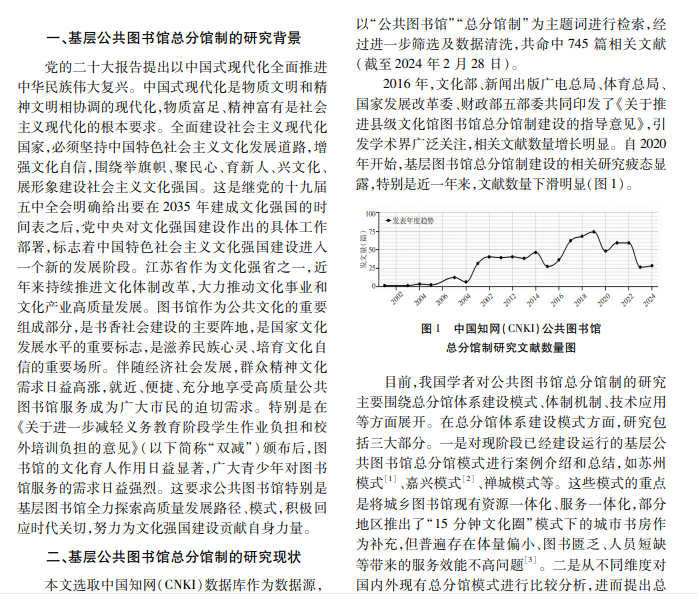 本文通过分析常州市武进区图书馆近年来多措并举推动总分馆制建设,实现基层公共图书馆事业 高质量发展的实践,提出我国基层公共图书馆总分馆制服务体系的建设策略,以期为中国式现代化公共图书馆 高质量发展提供借鉴和思考。