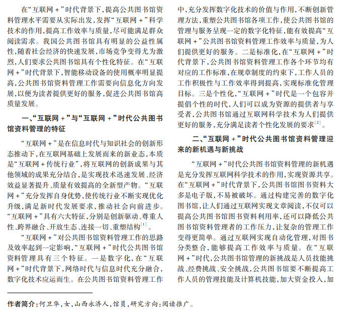 “互联网 +”时代公共图书馆 图书资料管理的研究
