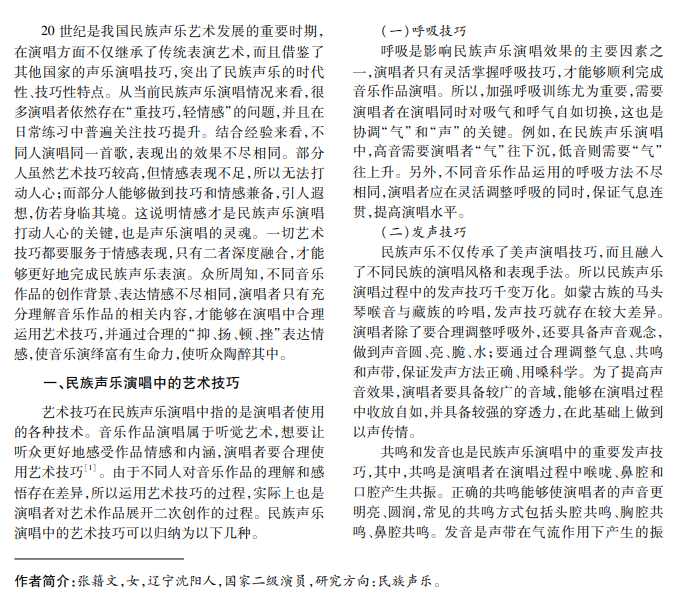 民族音乐是中华优秀文化的重要组成部分,其诞生和发展与宗法社会、农耕文明息息相关,所以在 审美方面呈现出鲜明的保守性、内敛性等特点。声乐演唱要求适度表达情感、合理使用艺术技巧,做到“乐而不 淫,哀而不伤”。本文结合实践经验阐述民族声乐演唱中的艺术技巧和情感表现,深入分析二者关系,提出行之 有效的融合策略。