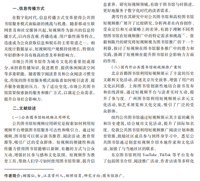 随着短视频平台兴起,公共图书馆开始尝试运用短视频进行服务推广,以提升服务效能。本文探 讨影响市级公共图书馆短视频推广效果的关键因素,并提出相应的策略建议。