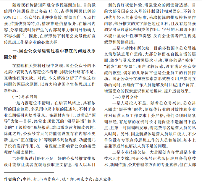 随着新媒体技术飞速发展,微信公众平台(简称“公众号”)的出现为开展宣传思想工作、塑造品牌 形象、凝聚改革发展正能量提供了充满活力的崭新渠道。如何利用公众号做好宣传思想工作成为企业必修课。 本文以 L石油公司公众号的建设运营为例,对公众号高质量运营展开实践探讨,以期构建企业现代宣传思想工 作新格局。