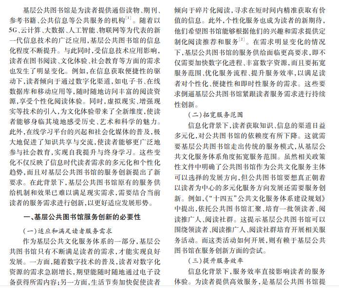 信息化背景下,基层图书馆应当立足基层发展大局,创新服务内容,拓展服务路径,打造以图书借 阅、文化传播、社会教育等功能于一体的综合性公共服务机构,以更好地发挥服务功能。本文在论证基层公共 图书馆服务创新必要性的基础上,对信息化背景下服务创新面临的挑战及对策进行讨论分析。