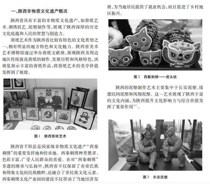 文创产品是从文化、创意、产品层面展开的文化宣传。陕西省为提高文化影响力和可持续发展能 力,十分重视非遗旅游文创产品设计工作。本文从陕西非物质文化遗产概况、意义、方法等方面展开分析,以期 为陕西文化创意工作提供参考。