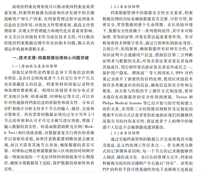 档案数据是档案管理的关键部分,档案数据治理能力决定档案管理系统建设水平。伴随区块链技 术运用能力提高,当前档案数据治理包括优化高层规划、完善管理系统和服务生态建立三方面,本文对基于区 块链技术的档案数据治理进行研究。