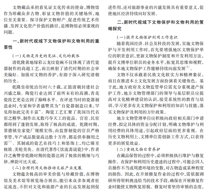 新时代视域下文物保护和文物利用的探究