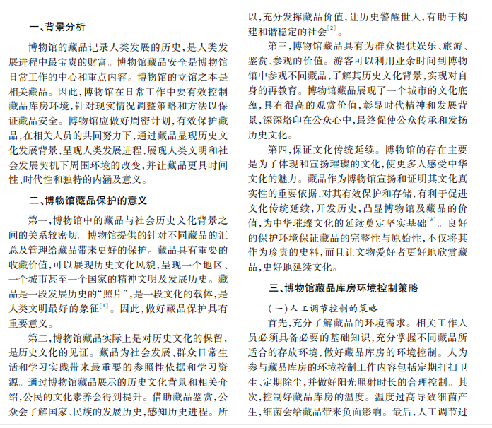 做好博物馆藏品库房环境的控制工作,维护博物馆藏品安全,可以让博物馆藏品得到更好的保护。 本文分析博物馆藏品保护的意义,介绍博物馆藏品库房环境控制策略,最后分析博物馆藏品安全的现实情况, 针对性提出解决策略,并指出藏品预防性的重要意义。