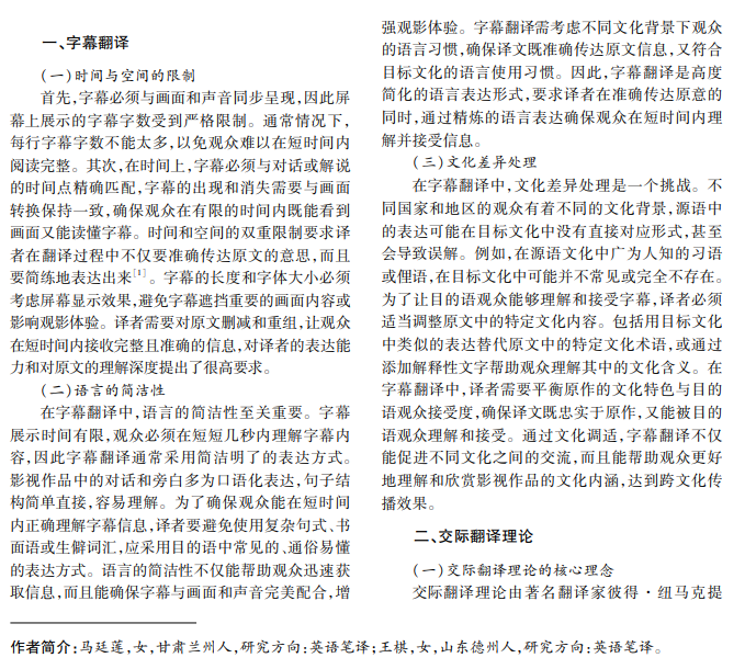在全球化背景下,文化产业更注重国际化发展。随着电视剧、电影行业蓬勃发展,字幕翻译受到越 来越多关注。字幕翻译在展现国家文化中发挥着重要作用,研究字幕翻译意义重大。本文在交际翻译理论视 角下,以《生活大爆炸》第一季为例,对字幕翻译展开研究。