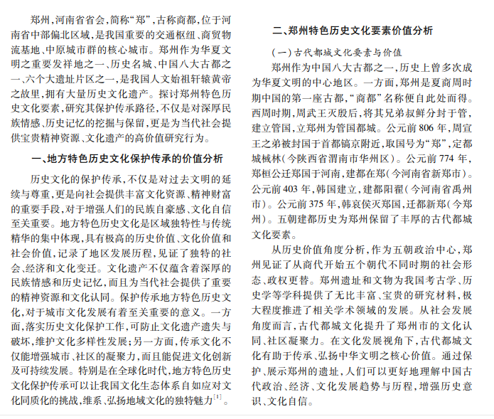 本文探讨郑州特色历史文化要素价值与保护传承路径,深度分析古代都城文化、商文化等文化要 素价值,从多角度入手探讨郑州特色历史文化要素保护、传承策略。