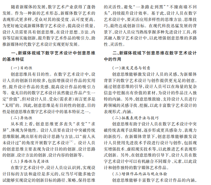 新媒体视域下数字艺术设计与创意思维研究