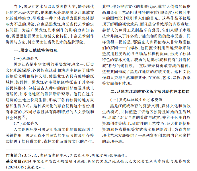 黑龙江美术作品曾经是中国艺术史上的璀璨篇章,其北大荒版画和冰雪画派的表现尤为突出。近 年来,水彩、漆画等小型绘画种类因具有创新性和现代感,开始崛起并获得更大市场份额。相比之下,黑龙江省 的传统强势画种因内容创意和表现方式未能紧跟时代步伐,发展呈现出滞后态势。