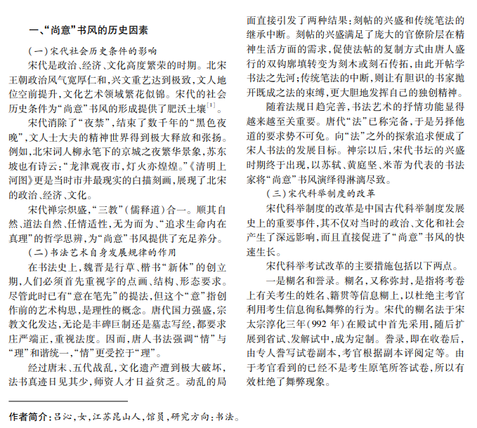 书法作为中华文化的瑰宝,承载了深厚的历史底蕴和丰富的文化内涵。从魏晋的“尚韵”到唐代的 “尚法”,再到宋代的“尚意”,书法艺术的风格随着时代变迁而不断演变。宋代“尚意”书风的形成,不仅是中国 书法史上的重要变革,也是宋代思想文化的缩影。