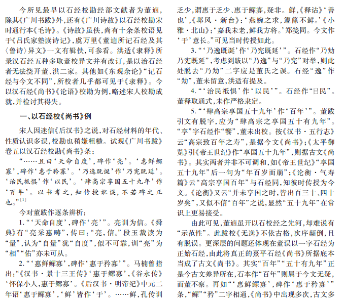 本文以《广川书跋》《隶释》为中心,评述宋人利用石刻文献校勘经部文献的成就,简要评估传世与 出土文献研究受惠于宋人校勘整理的程度,探讨宋学风气对宋人石刻校勘的影响、宋人校勘对后世校勘学的垂 范意义。