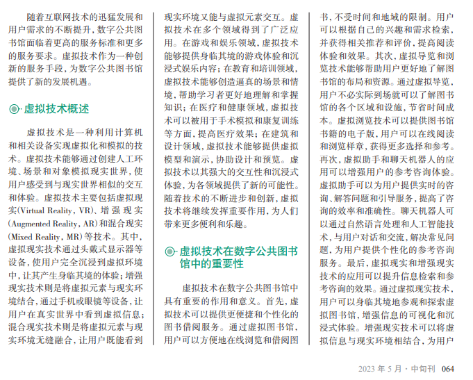 随着信息技 术 的 快 速 发 展, 虚拟技术在数字 公共图书馆中的 应用越来越广泛。