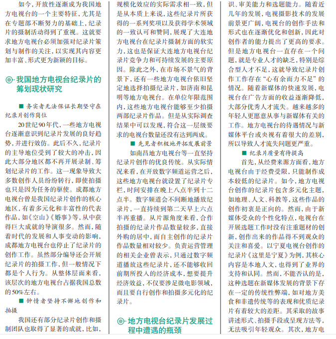 地方电视台纪录片的现状及发展趋向