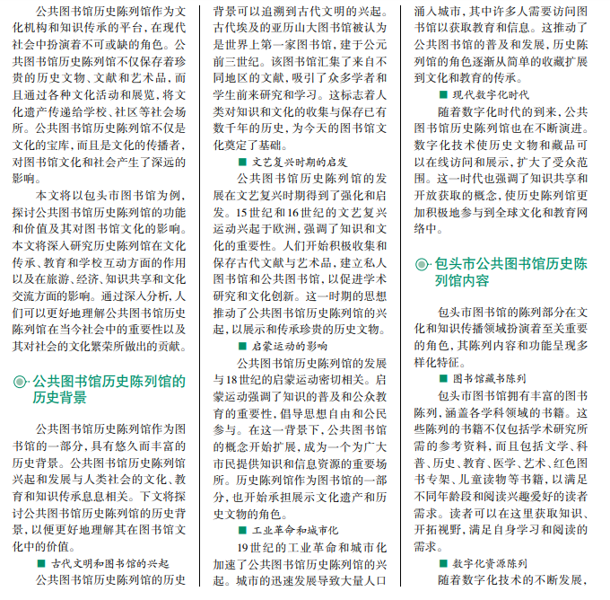 历史陈列馆在公共图书馆中的文化价值 ——以包头市图书馆为例