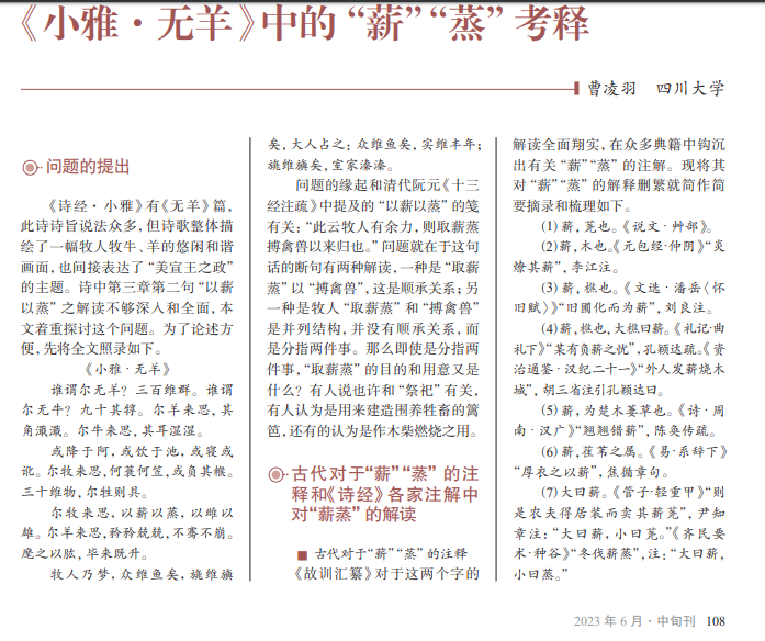 《小雅·无羊》中的“薪”“蒸”考释