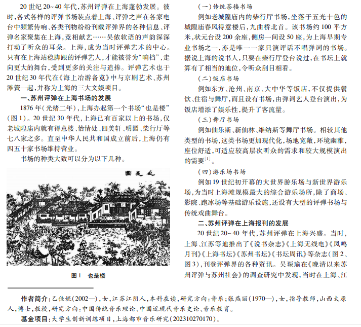 苏州评弹包括苏州评话、苏州弹词,起源于江苏苏州,流行于江、浙、沪地区,是以苏州方言为主的曲艺形 式,分别于 2006、2008、2010年入选第一批、第二批、第三批国家级非物质文化遗产名录及其扩展项目。评弹于 20世纪 20~40年代将重心逐渐转移至上海。本文简要概述了 20世纪 20~40年代苏州评弹在上海的发展,并试析其以上海为 发展中心的原因。