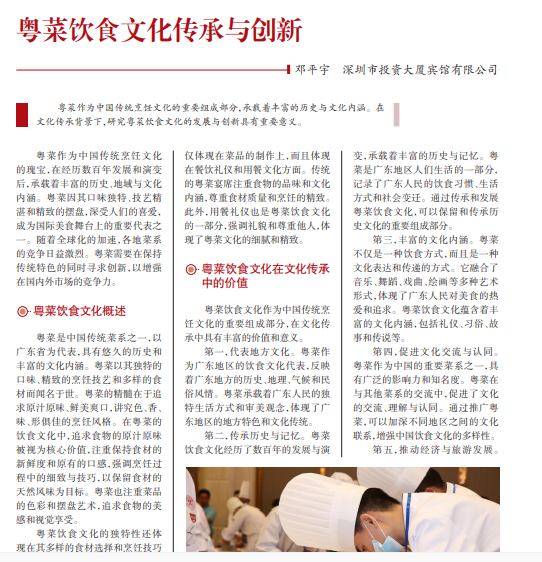 粤菜作为中国传统烹饪文化的重要组成部分,承载着丰富的历史与文化内涵。在 文化传承背景下,研究粤菜饮食文化的发展与创新具有重要意义。