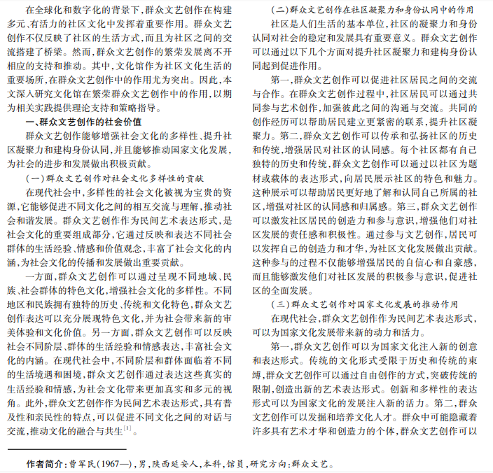 文化馆在繁荣群众文艺创作中的作用