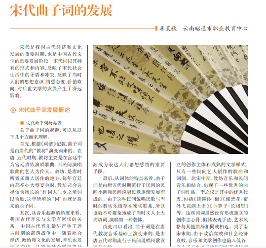 宋代曲子词是宋代词体的一种,以教坊曲子词为主要词体。曲子词与当 时的民间流行音乐《太平乐府》《教坊记》《珠玉词》等互相渗透、融合。曲子 词在宋代经历了由民间词向教坊音乐词的转变,形成了以工尺谱为载体的唱 曲形式和以调为单位、有固定格式的歌曲。其词体结构由散体向小令发展,从 篇幅短小向篇幅完整发展。其音乐形式由工尺谱向雅乐过渡,由单一的表现 娱乐功能向表现社会功能转变。其词体风格由通俗华丽向典雅工丽发展,形 成了以音律、辞藻、创作手法为主要特征的艺术风格。