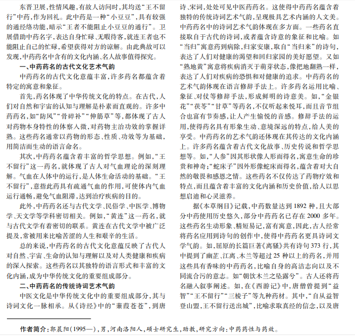 中药药名艺术气韵探究