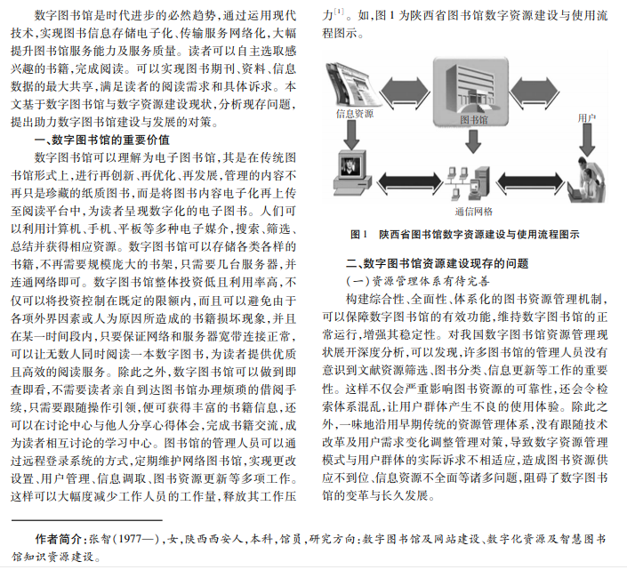 在计算机技术快速崛起与全面发展的新时代,社会群体的生活方式正悄无声息地发生改变,促使了图书馆 的数字化革命。早在 1945年,范内瓦·布什便提出了将传统形式的图书馆存储与新兴的计算机结合。在历史演变中, 数字图书馆逐步构建起综合化、体系化、统一化的网络数据资源,让阅读不再局限于纸质书籍翻页查询,而是通过在线 阅读、手机阅读等数字化阅读方式,获取海量的信息资源,在增强阅读便捷性的同时,顺应时代发展趋势。