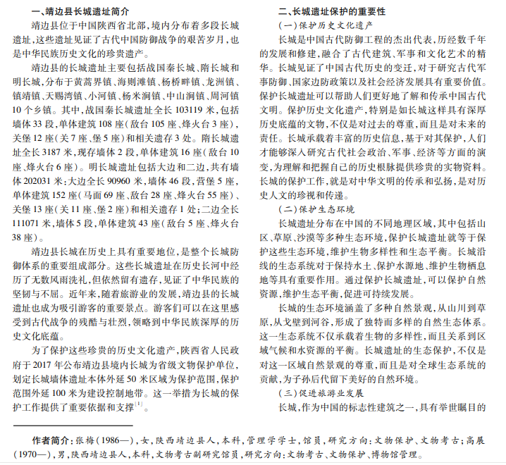 长城作为中国古代伟大的防御工程之一,不仅是历史见证,而且是文化瑰宝。靖边县境内长城遗址承载着 丰富的历史文化内涵,然而,由于多种原因,该长城遗址的保护面临着严峻的挑战。本文将追溯长城遗址的保护历史, 并深入探讨其未来发展,以期为更好地保护和传承靖边县长城遗址文化遗产提供有效策略和建议。