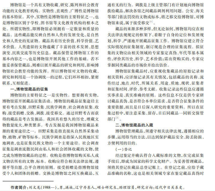 我国是一个文明古国,拥有悠久的历史、辽阔的疆域和得天独厚的地理位置。我国先人在生产生活中创造 并保存下来难以计数的珍贵文物。这些文物是历史演进、工艺发展、文化变迁、民族交流的信息载体,是反映人们生活 样态的实物资料。妥善地保存和保护文物,是每一代人的历史责任。博物馆在文物收藏与保护中发挥着重要作用。文 物保管是博物馆的一项基础工作,是开展其他工作的前提。