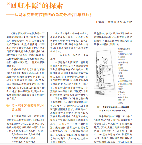 在《百年孤独》中,作者的叙事横跨布恩迪亚家族百年的兴衰历史,但叙事空间 上始终没有走出布恩迪亚家族的宅院。这座以作者外婆家宅院为基础建构的院子, 不仅是布恩迪亚家族百年兴衰的见证者,而且是作者在自我和民族双重意义上回 归本源的探索。