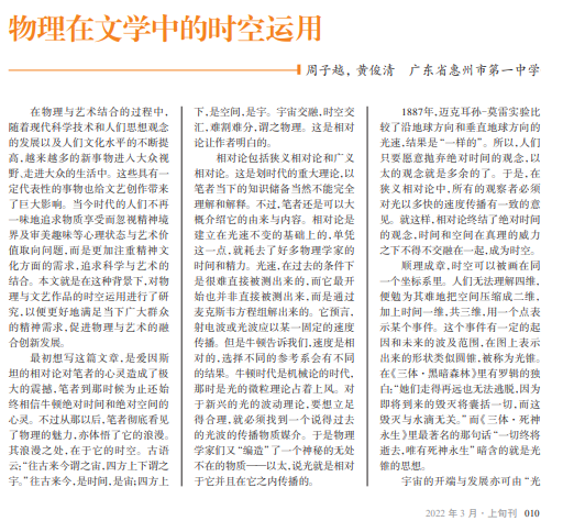 随着科学技术的发展, 人们对空间和时间、物理和 艺术之间的联系的关注度 逐渐提高,空间想象力在艺 术创作中的运用越来越多。 而时空是一种独特且富有 创造性的形式,它可以表达 创作者所思所想、外显意识 和情感世界。