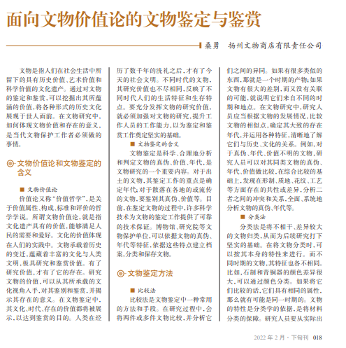 在人类社会发展的进程中, 文物是一种具有重大历史意义的 珍贵遗产,其文化价值不容忽视。 然而,现在文物交易市场上仿制 品越来越多,假货的出现不但扰 乱了古玩市场的正常秩序,而且 对文物的保护和传承产生了严重 影响。为了更好地认识和理解这 些文物,深入剖析它们的价值和 历史意义,鉴定和鉴赏工作就变 得尤为重要。