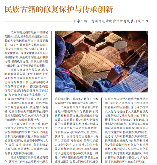 民族古籍是指曾经在中国疆域 范围内生活过的少数民族或正在生活 着的各少数民族在历史上遗留下来 的一切文字、具有某种文化涵义的符 号(文字的雏形)及口头语言记录下来 的文化载体。这种文化载体可分为口 碑载体古籍、原生载体古籍、金石载体 古籍、书面载体古籍。民族文献古籍 一般是指1911年辛亥革命前的书籍。