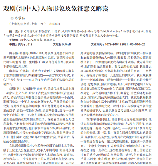 本文对埃及著名思想家、小说家、戏剧家陶菲格·哈基姆的戏剧作品《洞中人》的人物形象进行分析,探究 人物形象的象征意义,分析作者在作品中要阐述的哲学道理,研究作者象征主义手法的特色。