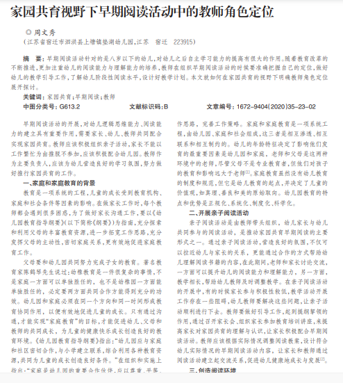 早期阅读活动的开展,对幼儿逻辑思维能力、阅读能力的建立具有重要作用,需要家长、幼儿、教师共同配合实现家园共育。教师应该积极组织亲子活动,家长不能以工作繁忙为由推脱不参加,应该积极配合幼儿园。教师作为主要负责人,应该为幼儿营造良好的学习氛围,努力做好推行家园共育的工作。
