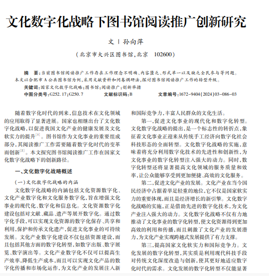 国家文化数字化战略;图书馆;阅读推广;创新举措
