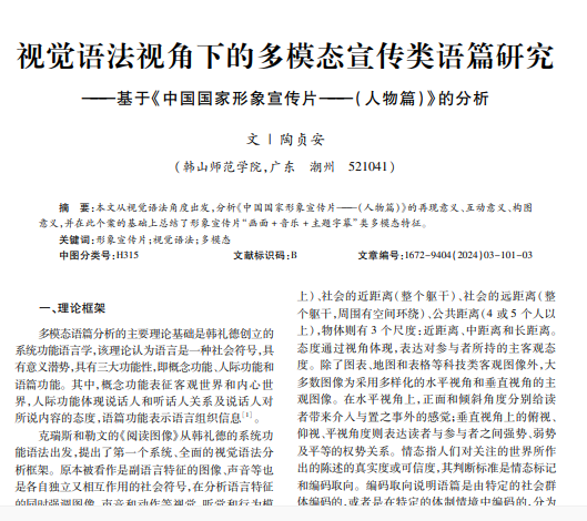 视觉语法视角下的多模态宣传类语篇研究 ———基于《中国国家形象宣传片———(人物篇)》的分析