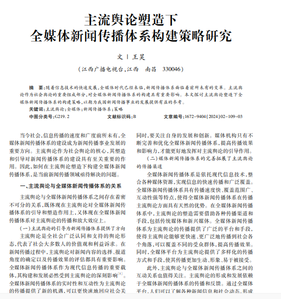 随着信息技术的快速发展,全媒体时代已经来临,新闻传播体系面临着前所未有的变革。主流舆 论作为社会舆论的重要组成部分,对全媒体新闻传播体系的构建具有重要影响。本文探讨主流舆论塑造下全 媒体新闻传播体系的构建策略,以期为我国新闻传播事业的发展提供有益的参考。