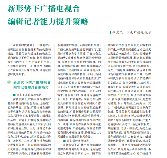 新形势下广播电视台 编辑记者能力提升策略