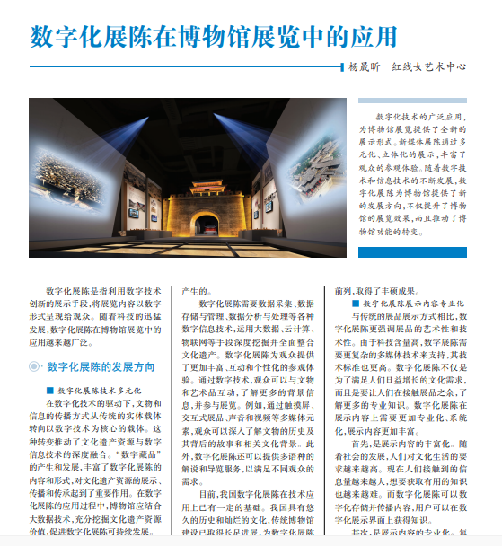 数字化技术的广泛应用, 为博物馆展览提供了全新的 展示形式。新媒体展陈通过多 元化、立体化的展示,丰富了 观众的参观体验。随着数字技 术和信息技术的不断发展,数 字化展陈为博物馆提供了新 的发展方向,不仅提升了博物 馆的展览效果,而且推动了博 物馆功能的转变。