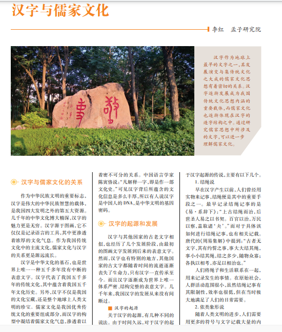 汉字作为地球上 最早的文字之一,其发 展演变与集传统文化 之大成的儒家文化思 想有着密切的关系。汉 字逐渐发展成为我国 传统文化思想内涵的 重要载体,而儒家文化 也逐渐体现在汉字的 造字结构之中。通过研 究儒家思想中所涉及 的文字,可以进一步 理解儒家文化。