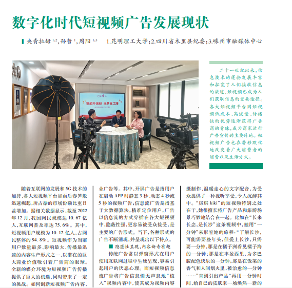 二十一世纪以来,信 息技术的蓬勃发展丰富 和拓宽了人们接收信息 的渠道,短视频已成为人 们获取信息的重要途径。 各大短视频平台因短视 频低成本、高流量、传播 快的优势逐渐获得广告 商的青睐,成为商家进行 广告宣传的主要阵地。短 视频广告也在潜移默化 地改变着广大消费者的 消费以及生活方式。
