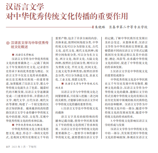 语言作为区分人 类与其他生物的显著标 志,也是文化的重要呈 现方式。高校开设汉语 言文学专业,不但可以 使学生深入学习与了解 我国的语言,而且对于 中华优秀传统文化的传 播也起到了关键作用。