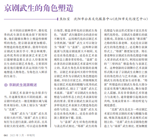 京剧是中华传统 艺术,历史悠久,精彩纷 呈。京剧的艺术魅力不 只有悦耳的唱腔与戏 剧动作,也有其独特的 功夫技艺。在京剧表演 中,京剧武生的高超武 技,不仅让观众为之喝 彩、振奋,而且借此鲜活 地展现出了所扮演角色 的个性特点。