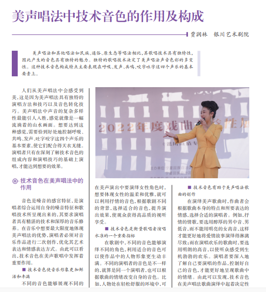 美声唱法和其他唱法如民族、通俗、原生态等唱法相比,其歌唱技术具有独特性, 因此产生的音色具有独特的魅力。独特的歌唱技术决定了美声唱法声音色彩的多变 性。这种技术音色构成特点主要表现在呼吸、发声、共鸣、咬字吐字这四个声乐的基本 要素上。