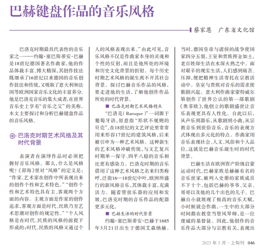德国著名作曲家 约翰·塞巴斯蒂安·巴 赫( J.S.Bach,1685― 1750)是巴洛克音乐 最具代表性的人物之 一,他把复调音乐创作 技法推向了巅峰,在世 界音乐史上享有“音 乐之父”的美称。