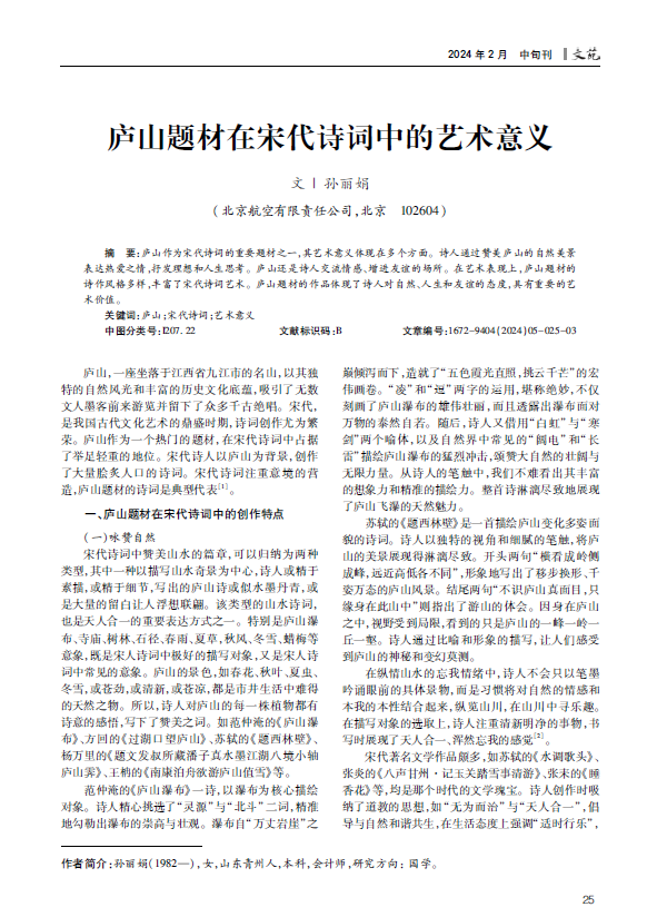 庐山作为宋代诗词的重要题材之一,其艺术意义体现在多个方面。诗人通过赞美庐山的自然美景