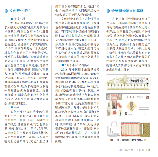 近年来,沉浸式角色扮演解谜活动“剧本杀”风靡于年轻群体,为博物馆的文化宣 传和文化教育开辟了新业态、新道路。本文以中国会计博物馆为文化依托,将“会计历 史+剧本杀”作为创新点,结合馆内陈设和文物,匠心打造具有本校特色并融合会计历 史的趣味性剧本杀,以提升会计历史文化的传播度。