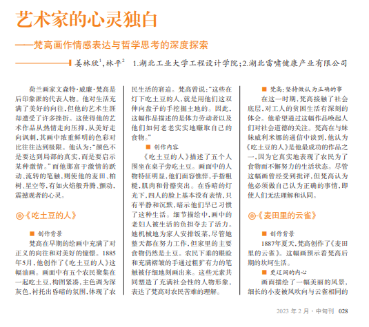 梵高是一位富有创造力 和独特性的艺术家,他通过 画笔,在画布上表达自己的 情感和思考,他的作品也因 此成为现代艺术史上的经典 之作。以梵高不同时期的作 品为切入点,可以更深入地 探究这位艺术大师的一生。 从他早期作品中感受他对黑 暗孤独的情感,到夹杂着希 望和失落的中期作品,以及 最后展现生命力和激情的晚 期作品,人们可以更全面地 认识梵高这位伟大的艺术 家,领悟他的创作理念,深刻 理解他的创作精神。